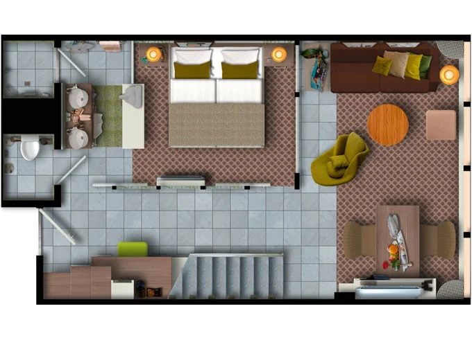 | SUTO - Themen Suite 54 m² + balkón 15 m² so stolom, ležadlom a hojdacou sieťou. Spálňa, obývacia časť, šatník. 14. paluba. Max 4 osoby. Výhody Suite. | 6 238 € 3 119 € za osobu |