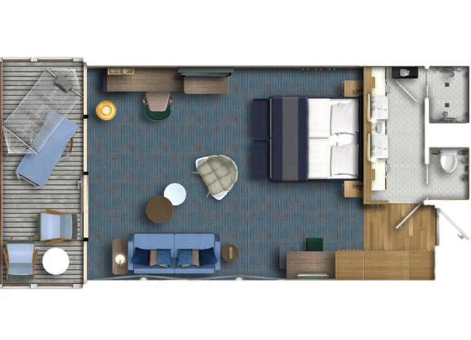 SUSO - Übersee Suite 40 m² + balkón 9 m² s ležadlami a hojdacou sieťou. 14. paluba. Max 4 osoby. Výhody Suite. 8 198 € 4 099 € za osobu