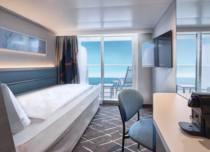 BAUR - Kajuta s balkónom PUR 17 m² + balkón 5 m². Max 4 osoby. Cenový model PUR. 2 338 € 2 338 € za osobu