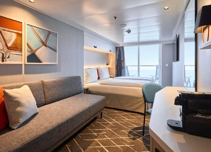 | SKAO - Schöne Aussicht Suite 39 m² + balkón 10-12 m² s ležadlami a hojdacou sieťou. 7-14. paluba. Max 4 osoby. Výhody Suite. | 5 498 € 2 749 € za osobu | ||