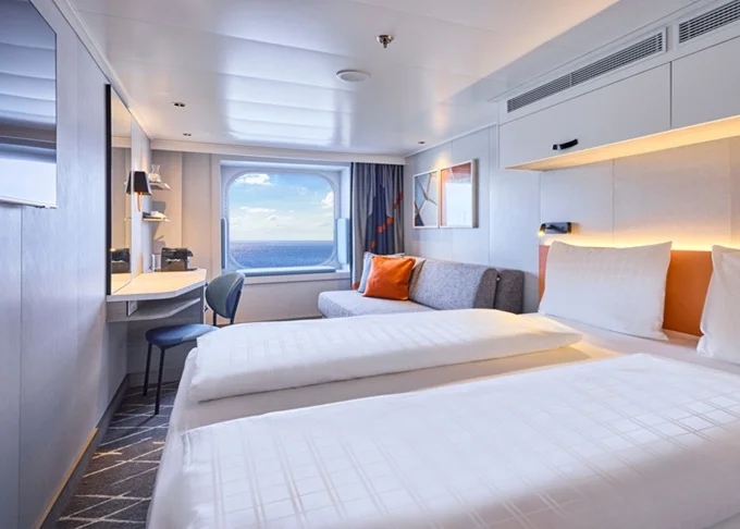 | FKAO - Rodinná kajuta s oknom A 32-42 m². Neotvárateľné okno. 7,8,9. paluba. Hracia konzola, šatník. Max 3-6 osoby. | 3 696 € 616 € za osobu |