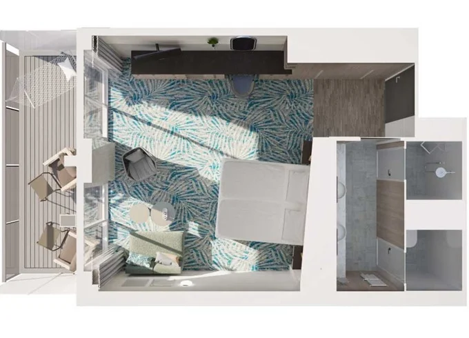 | JKBO - Junior Suite s balkónom B 26 m² + balkón 7 m² so stoličkami a podnožkami. 8-12. paluba. Max 4 osoby. Výhody Junior Suite. | 5 706 € 1 902 € za osobu | ||