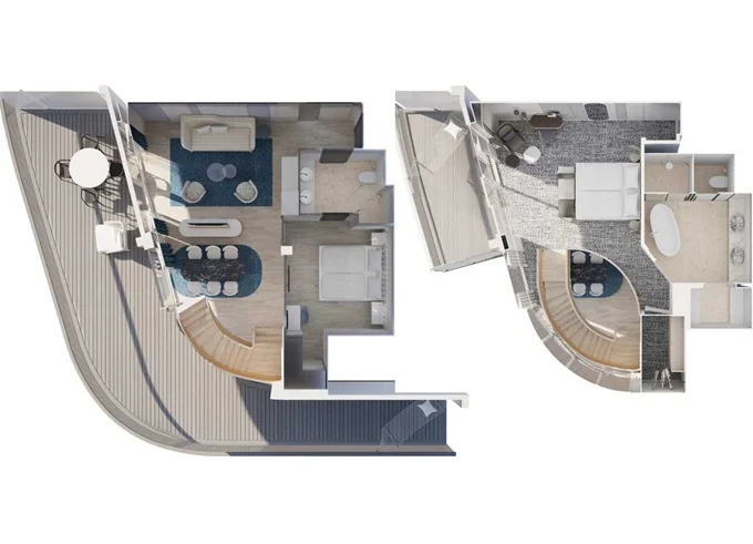 | JKAO - Junior Suite s balkónom 26 m² + balkón 7 m² so stoličkami a podnožkami. 9-14. paluba. Max 4 osoby. Výhody Junior Suite. | 3 998 € 3 998 € za osobu |